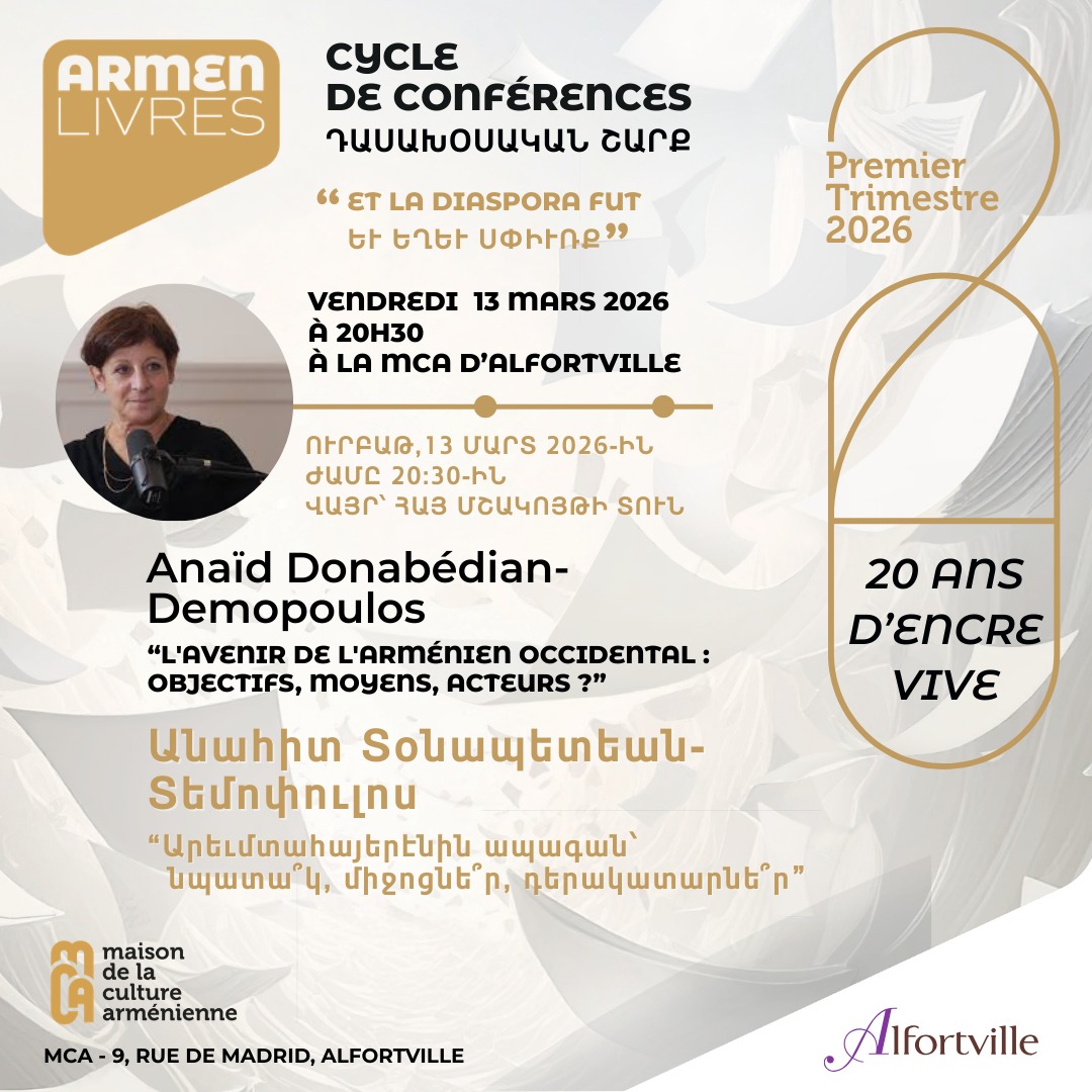Pour la troisième conférence à l’occasion des 20 ans d’Armen’Livres, la MCA a l’immense honneur de recevoir comme intervenante : Anahid Donabédian- Demopoulos.