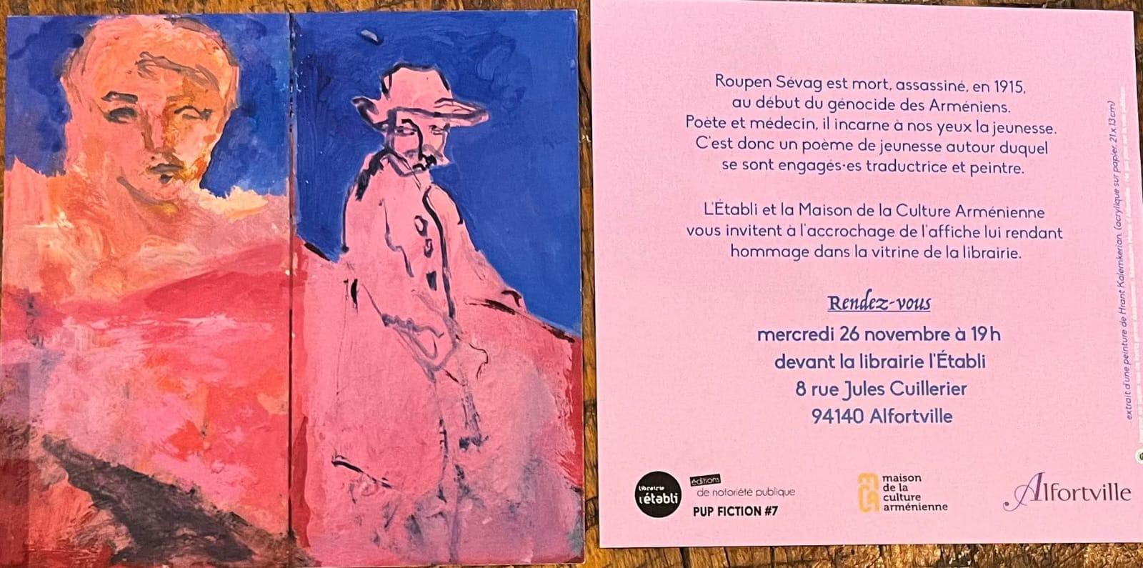 L’Etabli et la Maison de la Culture Arménienne vous invitent a l’accrochage de l’affiche lui rendant hommage dans la vitrine de la librairie.
